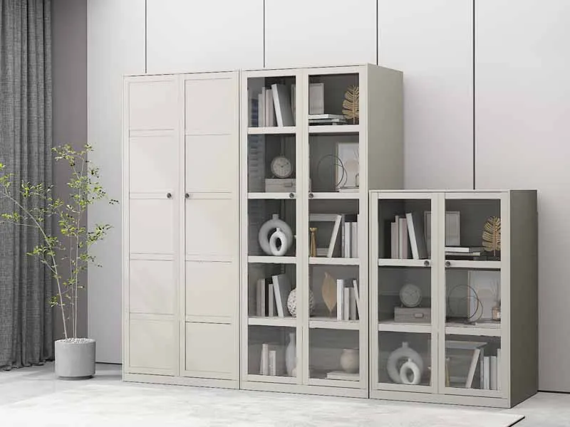 Enclosed cabinet doors effectively protect contents from dust, while glass‑door options balance display and storage functions, offering flexible choices. The well‑planned tiered layout facilitates organized categorization of items.